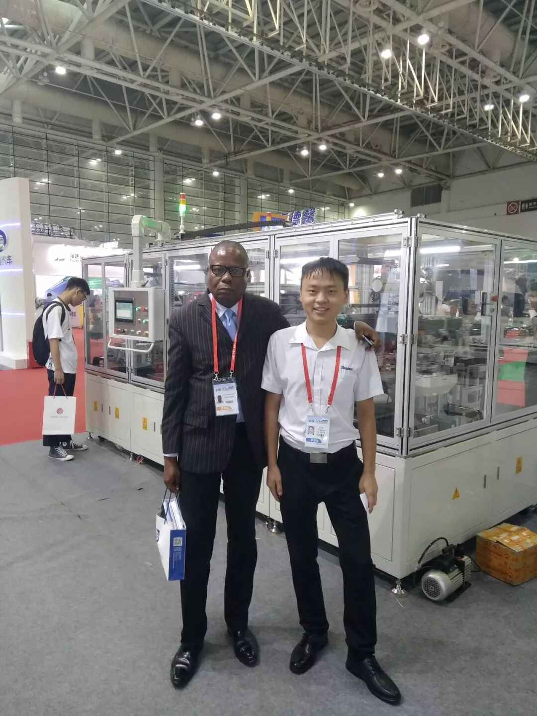 海外客商遍布五洲。其中来自刚果那个客商还和总统是亲戚关系,拟建新能源电池厂,来华了解市场情况后便于采购设备。他询问了我们设备的产能情况,还特意给我们手写了他的个人信息,便于沟通技术细节,对我们的设备高达180PPM生产速度赞不绝口,成了我们的准成交客户。