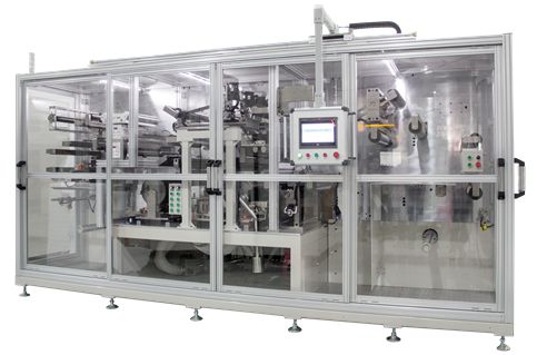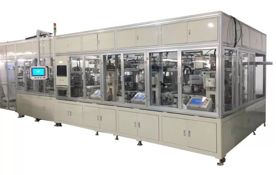 这款设备主要实现将卷状极片(连续涂布极片)自动成型为单片极片,并将成型的极片与成卷隔膜层叠成单体电芯的功能。